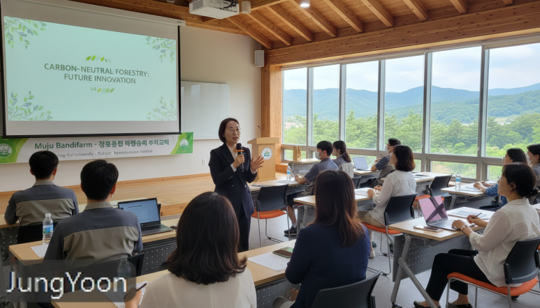 '혁신의 요람'으로 거듭나고 있습니다. 산림청 지정 전문교육기관 무주반디팜은 최정윤 동의대학교 행정학과 교수를 초청해 **‘탄소중립시대